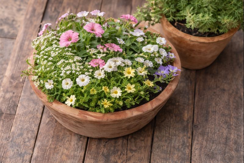 ・目安は 6〜10号(直径18〜30cm)。寄せ植えは土が多いほど管理が楽です。